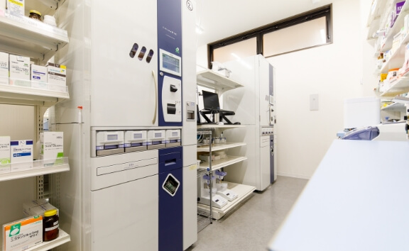 自動で薬の入庫と払出を行う調剤ロボットを導入しています。