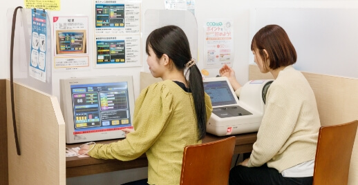 飯塚市が取り組む「いいづか健幸ポイント」の体組成計とリーダーライターを設置しています。結果に対して、管理栄養士からアドバイスも可能です。