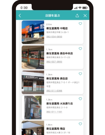 最寄りの薬局を選べる!受取り希望する日時の指定、受け取りたい薬局を選択することができます。
