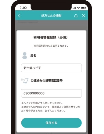 診察後に受け取った処方せんを撮影し、受け取りを希望する薬局を選択して送信できます。