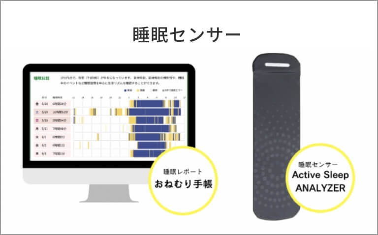 睡眠センサーを用いてデータを測定・分析し、測定結果に基づいた睡眠・健康アドバイスを実施しています。また、医療機関やご施設様に睡眠センサーデータの情報提供を行い、最適なお薬の提供に努めています。